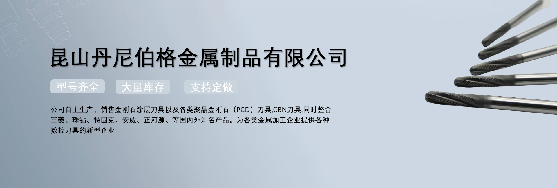 昆山丹尼伯格金屬制品有限公司是一家專注于數(shù)控非標(biāo)刀具、高硬度刀具于一體的金屬切削工具的企業(yè)。公司自主生產(chǎn)、銷售金剛石涂層刀具以及各類聚晶金剛石(PCD)刀具,CBN刀具,同時(shí)整合三菱、珠鉆、特固克、安...